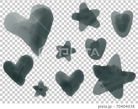 ハートと星の水彩滲みセット 黒のイラスト素材